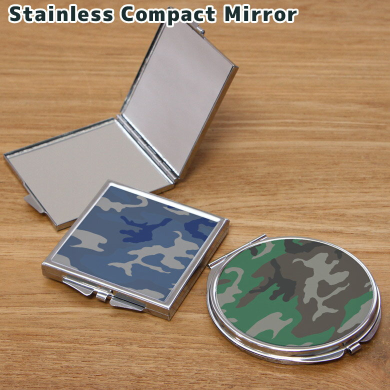 迷彩 折りたたみコンパクトミラー 拡大鏡付き2面タイプ グリーン ブラック ブルー ピンク 密林柄 カモフラ ミリタリーデザイン