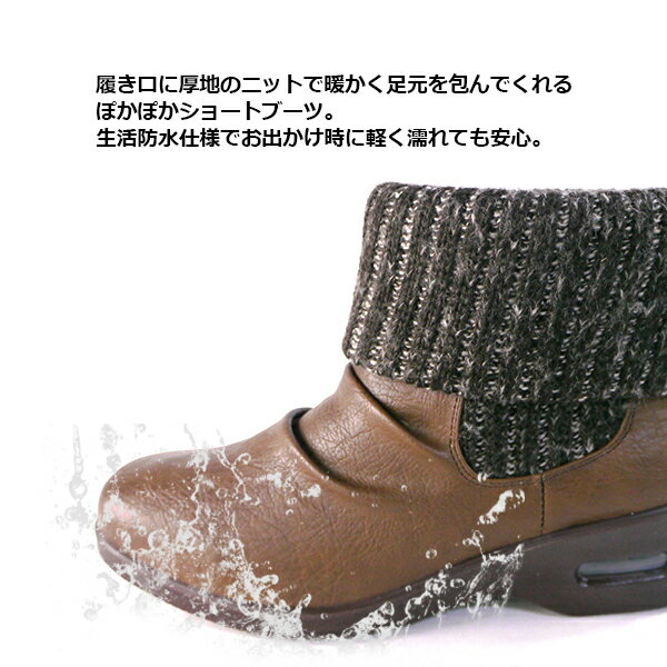 ■ポイント■ 履き口に厚地のニットで暖かく足元を包んでくれるぽかぽかショートブーツ。