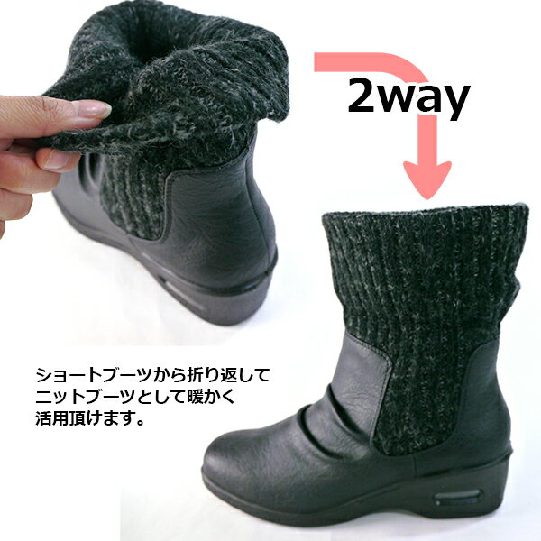 【即納】【送料無料】【あす楽】 あったか 2WAY ブーツ レディース AIAI プレーン 【AI9516】 ニットブーツ ゆったり 4E もちもちクッション 生活防水 防滑 吸汗 保温 抗菌 防臭 □ai9516□