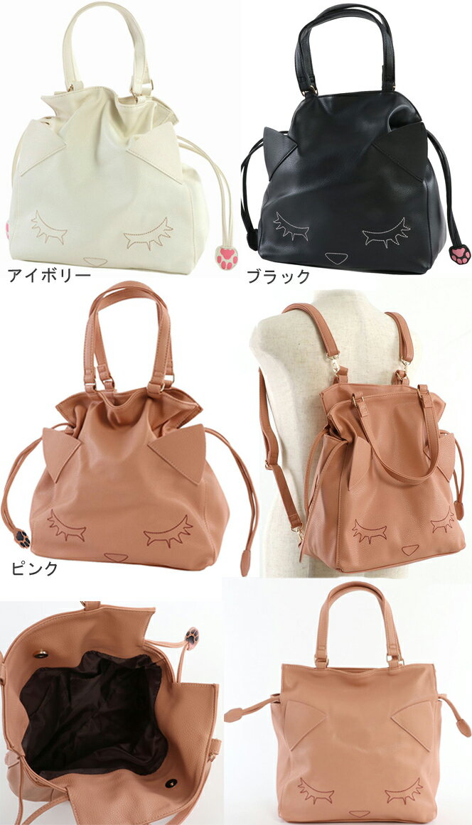 A879■お買いドキドキ!【ステッチプーちゃん巾着2wayリュックバッグ】肉球が可愛いおすましプーちゃん猫のぷーちゃんフラッパーデイパックにくきゅう小猫耳catねこキャット黒猫ネコちゃんリュックcatアディクトネコ耳修学旅行ネコリュック雑貨