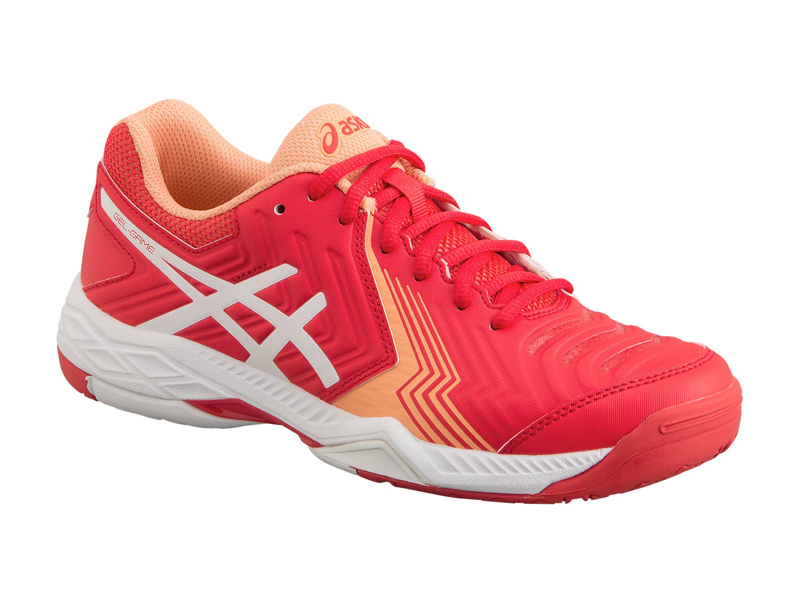 メーカー希望小売価格はメーカーカタログに基づいて掲載しています スペック ●品番 TLL790-600 ●商品名 LADY GEL-GAME 6 ●カラー RED ALERT/WHITE ●サイズ 22.5〜25.0cm ●素材 アッパー/SYNTHETIC LEATHER/SYNTHETIC FIBER アウターソール/RUBBER ●生産地 カンボジア 機能 ★