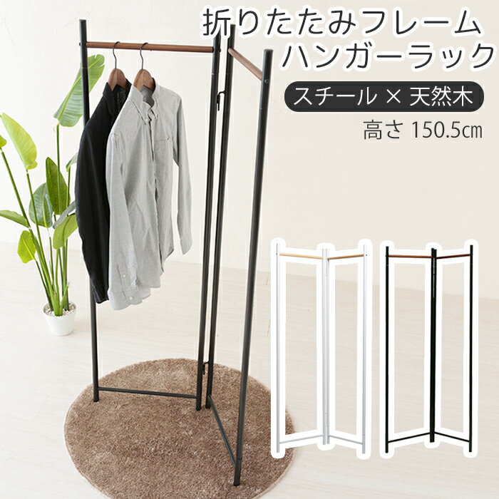 ----------------- 商品詳細 ----------------- サイズ(約):幅44.5×奥行2×高さ150.5cm 折りたたみ時サイズ(約):幅45.5×奥行4.5×150.5cm 材質:天然木、スチール、ラッカー塗装、粉体塗装 耐荷重(約):バー1本あたり3kg 重量(約):2.6kg 生産国:台湾製 その他:組立て品、脚裏ゴムカバー付き、折り畳み可能(収納時ロック機能なし) ■配送について ※沖縄・離島へのお届け不可 ----------------- 【商品説明】 スチール×天然木の組み合わせがモダンでスタイリッシュ 洋服が掛けやすく選びやすいオープンタイプ 使わない時は半分に折りたたんですき間に収納可能