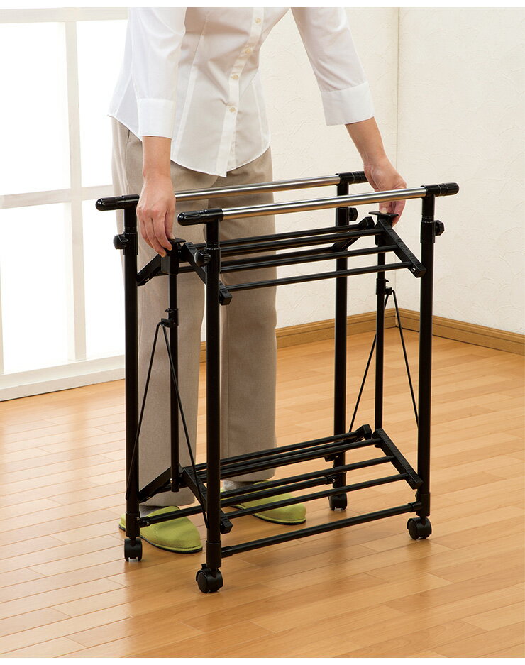 折りたためる ワンタッチハンガーラック2 物干しラック 洋服掛け 洗濯物干し 室内干しラック 折り畳み ハンガーラック Fu-00154(代引不可)【送料無料】