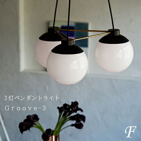 【当店在庫有】【LED電球付き】天井照明 3灯ペンダントライト グルーブ3 LED対応 おしゃれ スタイリッシュ 高級感 光沢 吊り下げ ブラック 丸形 ホワイトガラス リビング エントランス ダイニング キッチンカウンター デザイン インテリア照明 AWS