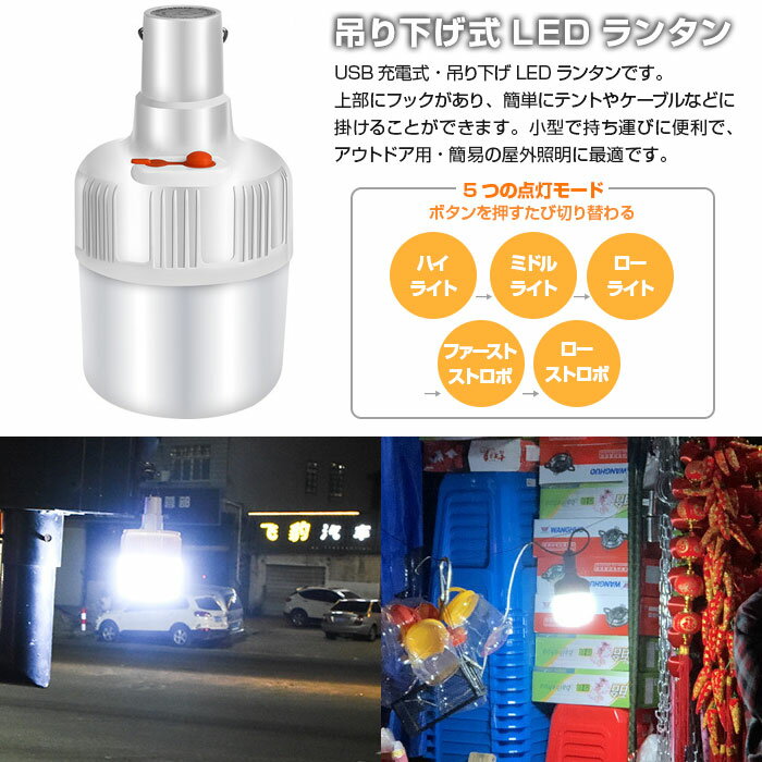 ◇ 吊り下げLEDランタン 説明 ◇ ● USB充電式・吊り下げLEDランタンです。